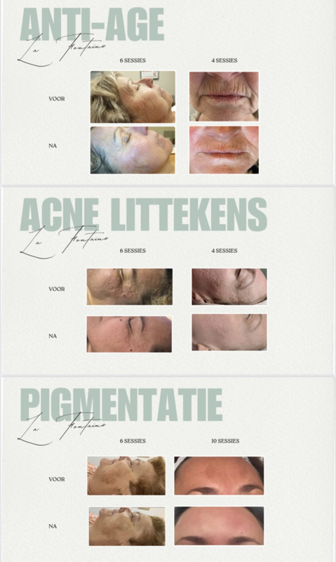 Elke sessie duurt ongeveer 30 minuten, en de behandeling wordt aanbevolen in een kuur van 5 of 10 sessies. En 30 minuten huidverzorging.
